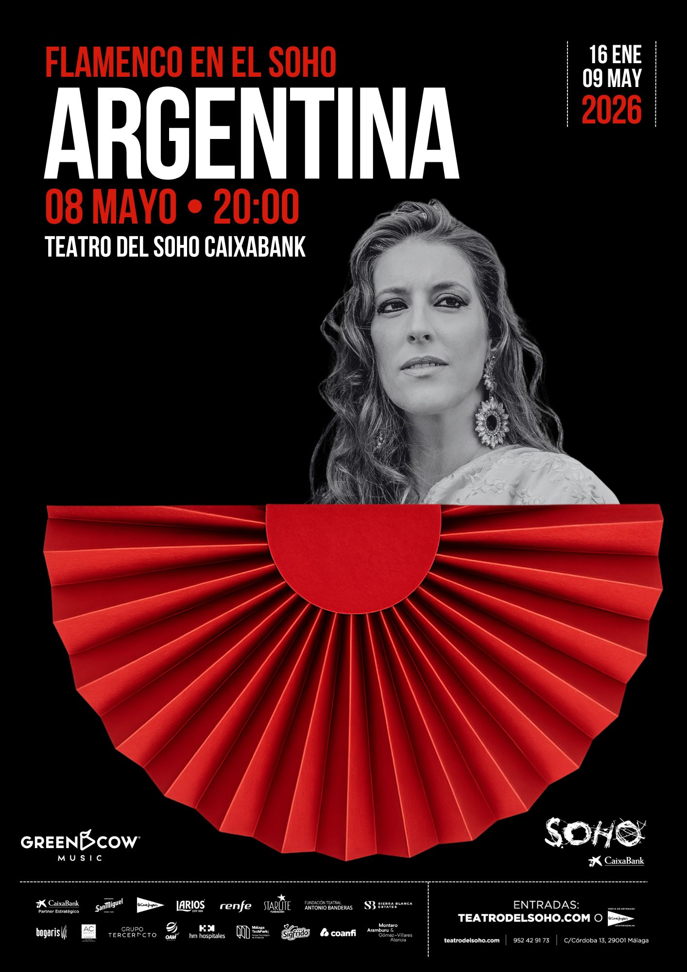 Argentina, una de las voces más emblemáticas y apasionantes del flamenco contemporáneo, presenta su espectáculo Flamenco por Cantaora. Este viaje artístico, profundo y conmovedor, recorre la esencia del flamenco a través de los cantes que han forjado la historia de este arte universal. Con su inconfundible sello personal, Argentina revive los palos más representativos del flamenco, desde la soleá hasta las alegrías, pasando por seguiriyas, marianas, verdiales, romance, bulerías y tantos. Cada interpretación es un homenaje a las raíces, a las grandes maestras y maestros que abrieron camino, pero también un canto de renovación, demostrando que el flamenco está más vivo que nunca.