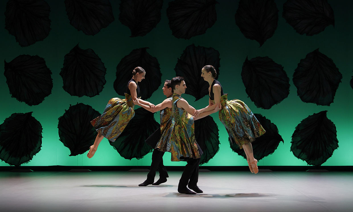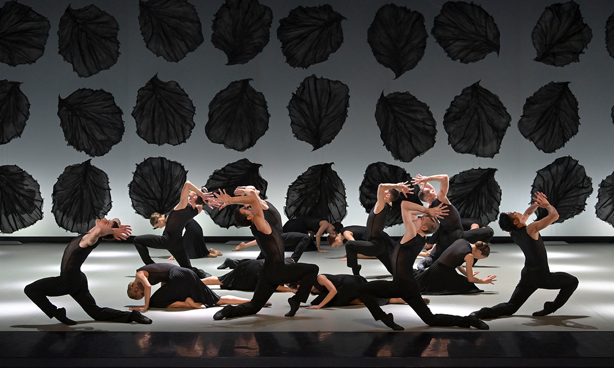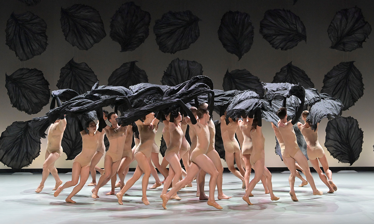 La puesta en escena es una gran fantasía poética en la que, sobre un fondo de pétalos negros diseminados por todo el horizonte, unos seres alados portan el cortejo fúnebre del espíritu y de la claridad. ¿Por qué? Porque Las Estaciones no es más que un ballet, y no hay nada más serio que lo inverosímil.