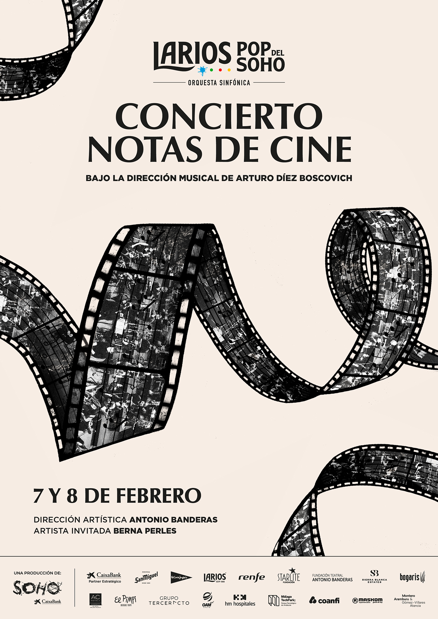 Bajo la batuta del maestro Arturo Díez Boscovich, la orquesta Larios Pop del Soho dedica un gran concierto al séptimo arte, con asombrosas partituras de NOTAS DE CINE. Un recorrido por los clásicos y éxitos del cine a través de un destacado repertorio que reúne a compositores tan legendarios como John Williams, Max Steiner, Vangelis o Monty Norman entre muchos otros.