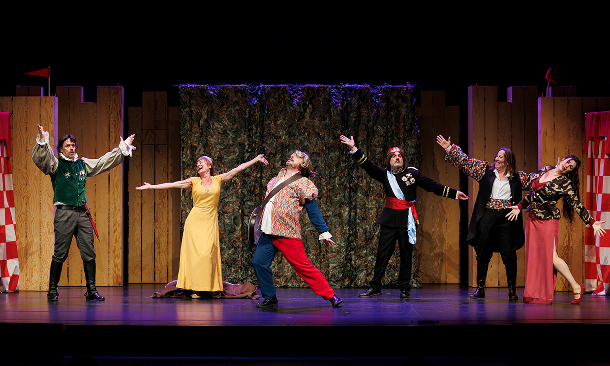 Con un reparto formado por Juanfra Juárez, Cristina Almazán, Amparo Marín, Manuel Monteagudo, Paqui Montoya, Moncho Sánchez-Diezma y Nuria Díaz Reguera, se trata de una obra que combina el teatro en verso y la parodia, haciendo uso de todos los trucos teatrales como personajes arquetípicos, anacronismos, referencias contemporáneas, juegos de palabras y visuales, chistes baratos que, bien dichos, parecen sublimes, vodevil, canciones, bailes, acrobacias y luchas.
