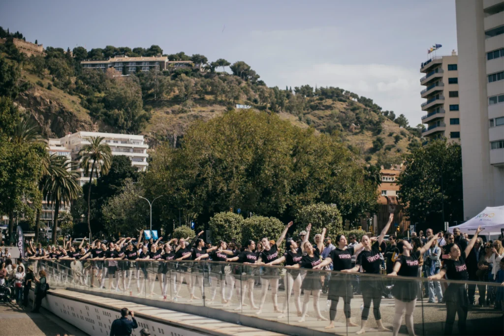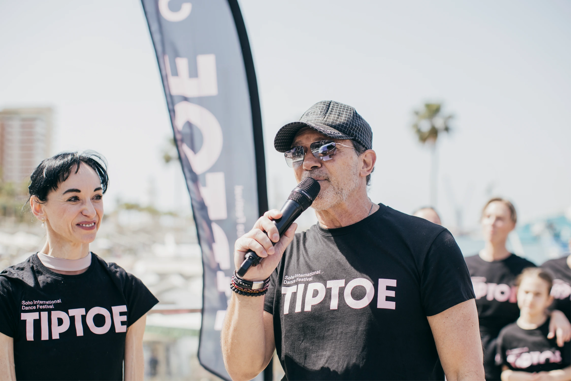 Por primera vez, Muelle Uno reunió a 600 personas para teñir la ciudad de los colores del Festival TIP TOE, negro y rosa, y bailar al ritmo de 11 conocidas piezas musicales llevadas a una gran barra de ballet al aire libre. Este evento pionero en Málaga, forma parte del Festival Internacional de Danza, impulsado por Antonio Banderas y dirigido por Lucía Lacarra, que se celebra en el Teatro del Soho CaixaBank hasta el 19 de abril.